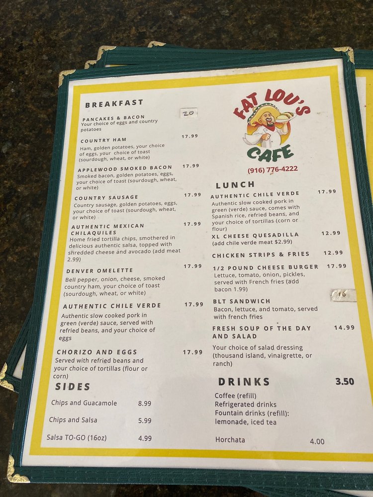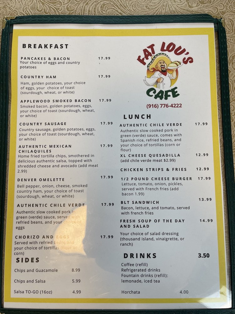 Fat Lou’s Cafe Menu